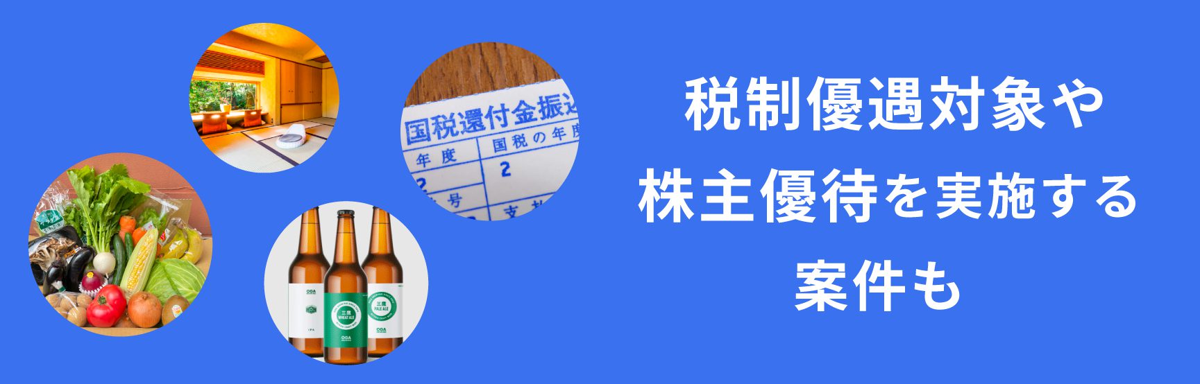 エンジェル税制の対象企業に投資した場合で、税制優遇の条件を満たした場合には、投資金額に応じて税制の優遇措置が受けられます。また、株主優待を実施している案件では商品やサービスの割引などの特典を受けられます